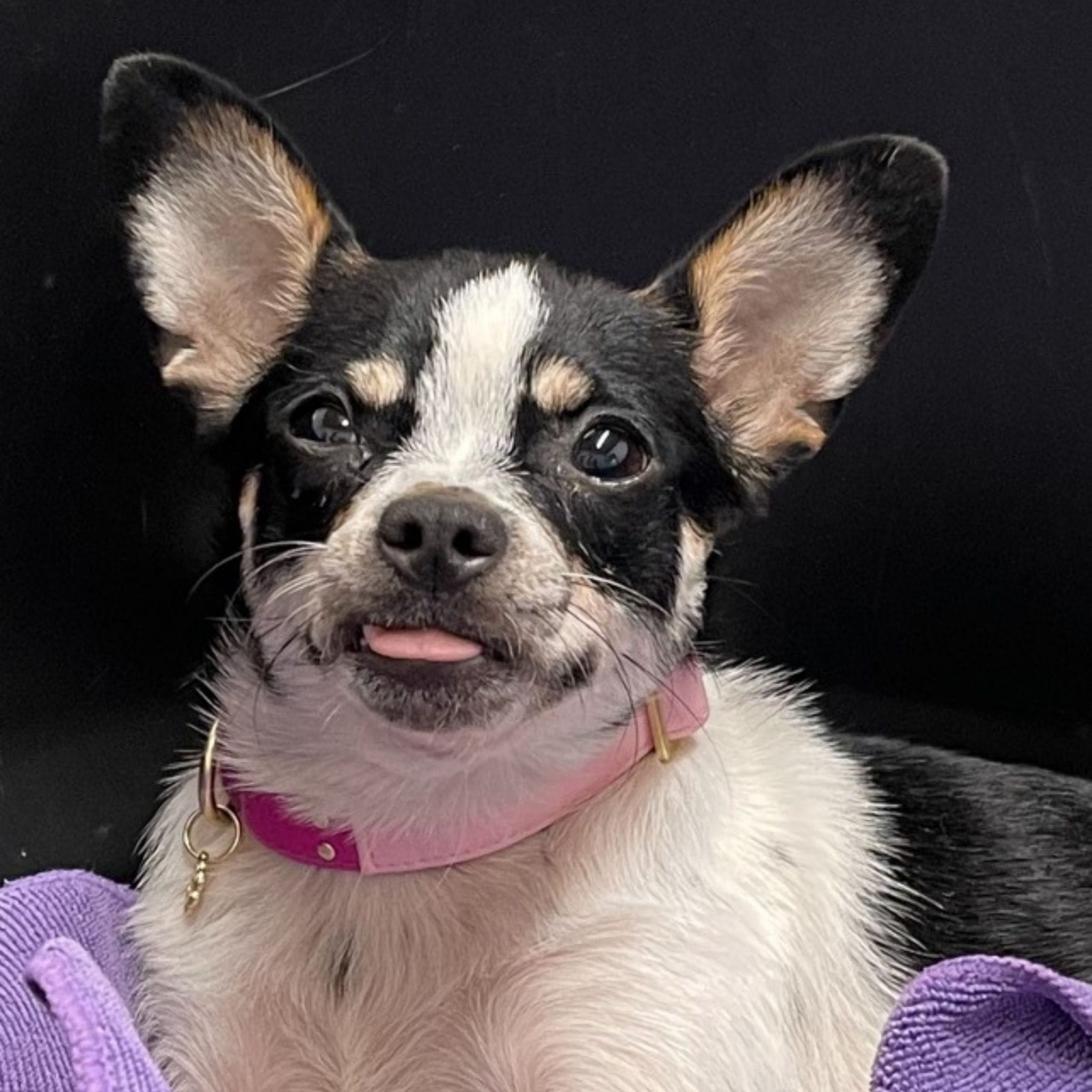 [vc_row][vc_column][vc_column_text]Floppy was found behind our office building in the Summer of 2021. Now she is living her best life!
